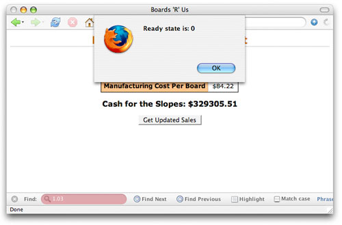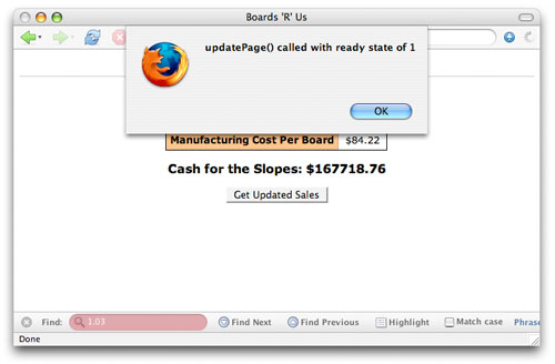 在對(duì)這個(gè)過(guò)程有一個(gè)基本的了解之后,請(qǐng)?jiān)囍鴱膸讉€(gè)不同的瀏覽器中訪問(wèn)您的頁(yè)面。您應(yīng)該會(huì)注意到各個(gè)瀏覽器如何處理這些就緒狀態(tài)并不一致。例如,在 Firefox 1.5 中,您會(huì)看到以下就緒狀態(tài):