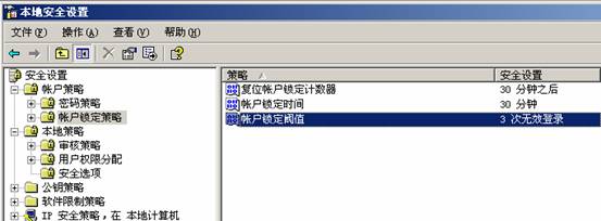 7.配置帳戶鎖定策略(在運(yùn)行中輸入gpedit.msc回車,打開(kāi)組策略編輯器,選擇計(jì)算機(jī)配置-Windows設(shè)置-安全設(shè)置-賬戶策略-賬戶鎖定策略,將賬戶設(shè)為“三次登陸無(wú)效”,“鎖定時(shí)間30分鐘”,“復(fù)位鎖定計(jì)數(shù)設(shè)為30分鐘”。)