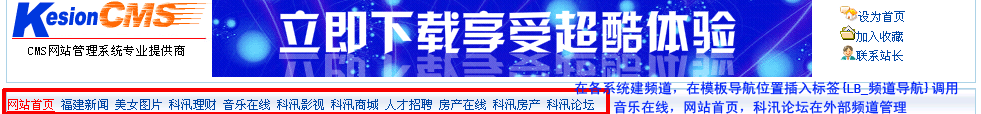 頻道導航如下圖中的“網(wǎng)站首頁 福建新聞 美女圖片 科汛理財 音樂在線 科汛影視 科汛商城 人才招聘 。。。?!?