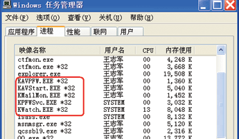 后來,訪問金山社區(qū)找到了問題的答案,原來64位的金山毒霸只是指驅(qū)動程序支持64位處理器,但主程序卻仍舊是32位。而江民公司的KV2006也只是支持64位平臺,采用了64位技術(shù)編程,可在Windows XP x64平臺下安裝,但任務(wù)管理器中的進(jìn)程仍是32位。