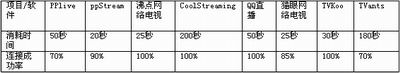 為了更加客觀的對這10款網(wǎng)絡電視軟件進行測評,我們采用隨機的方式對各款軟件中內(nèi)置的十個重點頻道電視節(jié)目進行了連接成功率測試和連接時間測試,其中連接時間測試是指從打開電視節(jié)目鏈接到視頻開始播放所消耗的時間,列表中的時間為連接頻道電視節(jié)目較快的那個時間。測試時間筆者專門留在晚上8:00-10:00,這個時間段在線的朋友一般相對較多。