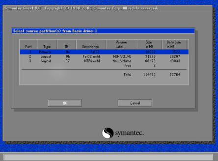 首先確認備份的系統(tǒng)有一個比較大的分區(qū).并確認能裝下你的硬盤備份.