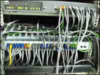 布線的最后一環(huán)就是入室電纜的連接了,如圖5所示,在入室電纜與交換機的連接處,徐主任則用紙條一一為它們標(biāo)明了“身份”。由于機柜是選擇的普通機柜,在機柜的兩側(cè)沒有預(yù)留走線的通道,所以,入室電纜的排列顯得有一點亂。如果系統(tǒng)的最終用戶沒有聯(lián)網(wǎng)的需求,也可以在此拔掉與交換機相連的線纜,以限制用戶的上網(wǎng)。