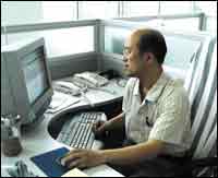 在對機房的控制上,徐主任也實現(xiàn)了他的遠(yuǎn)程監(jiān)控。在自己的辦公室里,徐主任現(xiàn)場演示了他對機房的遠(yuǎn)程監(jiān)控。如圖11所示,細(xì)心的讀者也一定發(fā)現(xiàn)了,徐主任是左手操作鼠標(biāo),右手敲擊鍵盤,據(jù)他講,這樣可以節(jié)約時間。記者私下一試,節(jié)約時間是真,不過難度太大。