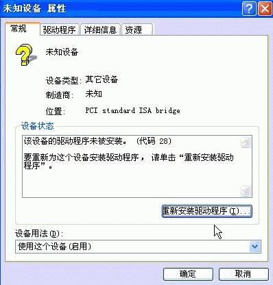在設(shè)備管理器中出現(xiàn)一個(gè)前面帶有問號(hào)的 未知設(shè)備 無法驅(qū)動(dòng)。