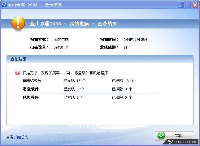 e)全面殺毒的結(jié)果報(bào)告