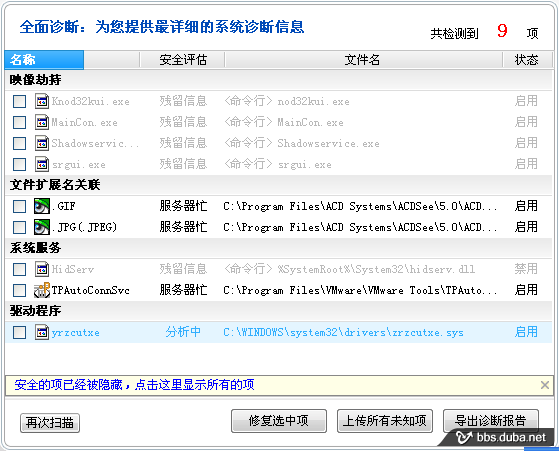 i)全面檢查中,映像劫持的殘留不能直接修復(fù),看最下面多了一行驅(qū)動(dòng)??梢愿鶕?jù)這個(gè)提示路徑,找到c:\windows\system32\drivers\zrzcutxe.sys。用清理專家粉碎掉,再修復(fù)該項(xiàng)。測(cè)試中,修復(fù)這個(gè)驅(qū)動(dòng),藍(lán)屏了,說(shuō)明病毒修改驅(qū)動(dòng),強(qiáng)行對(duì)驅(qū)動(dòng)進(jìn)行操作,會(huì)導(dǎo)致藍(lán)屏。