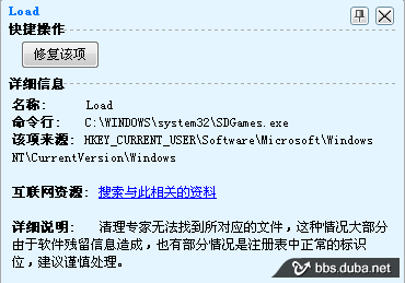 例如,修復(fù)這個(gè)LOAD項(xiàng),只需要鼠標(biāo)點(diǎn)擊該項(xiàng),在彈出的如下菜單中,點(diǎn)修復(fù)該項(xiàng)。