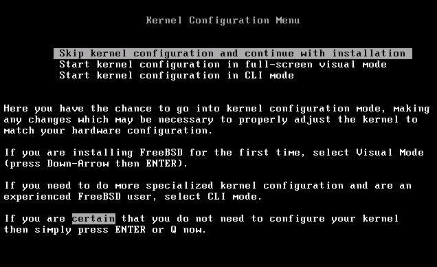 插入FreeBSD的第一張盤。正常引導(dǎo)后進入定制內(nèi)核界面,如圖一:
