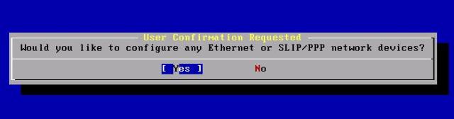 出現(xiàn)是否配置網(wǎng)絡(luò)設(shè)備提示。選YES,圖九: