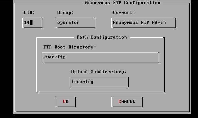 圖十三對匿名用戶的組和用戶目錄進行了設(shè)置,不用改動,直接選OK繼續(xù)。