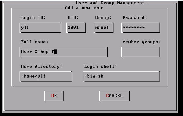 例如:我添加的用戶名是ylf,隸屬wheel系統(tǒng)組。