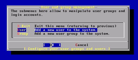 選擇USER Add a new user to the system,添加一個新用戶。OK繼續(xù)。