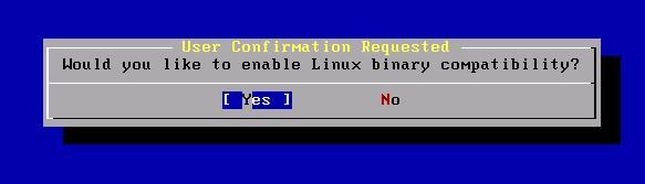 圖十四詢問是否啟用Linux二進制兼容支持,這將使FreeBSD可以運行所有Linux程序。選YES。