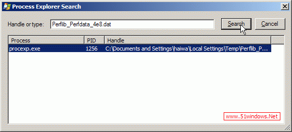 打開procexp.exe,按下面提示打開Find Handle