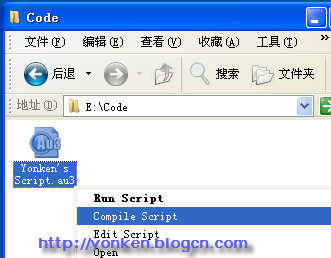 3.  在出現(xiàn)的右鍵菜單上點(diǎn)擊“Compile Script”,則腳本文件即被編譯并在同一目錄下生成一個(gè)同名文件(當(dāng)然,擴(kuò)展名變成.exe)。