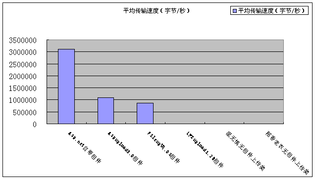 說明:asp.net組件三次上傳記錄數(shù)據(jù)分別為:4.671875,3.328125,3.328125,但從CPU運(yùn)行圖上看大約在35秒之間,結(jié)果以此為準(zhǔn),后三種上傳組件因速度太慢,已不具可比性,不參與測試