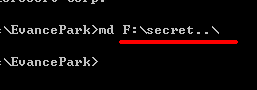 它會(huì)在F盤(pán)下新建一個(gè)名為“secret.”的文件夾,哈,這一個(gè)文件就是那一個(gè)“有鬼”的目錄了-可以把任何文件放到里面去。
