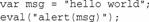 這里,變量msg是在eval()調(diào)用的環(huán)境外定義的,而警告仍然顯示的是文本"hello world",因為第二行代碼將被替換為一行真正的代碼。同樣,可以在eval()調(diào)用內(nèi)部定義函數(shù)或變量,然后在函數(shù)外的代碼中引用: