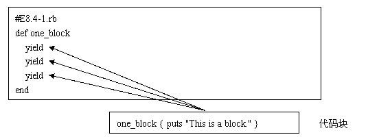調(diào)用一次塊要用關(guān)鍵字yield。每一次yield,塊就被調(diào)用一次。