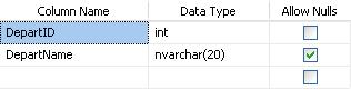 【提示】為了簡化起見,示例數(shù)據(jù)庫Depart.mdf中僅包含了一個表格DepartInfo,而且其架構(gòu)也十分簡單(其中字段DepartID為主關(guān)鍵字),如下圖2所示: