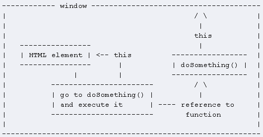 這僅僅是到doSomething()函數(shù)的一個引用。this關(guān)鍵字并沒有出現(xiàn)在onclick函數(shù)中,因此它不指向HTML元素。