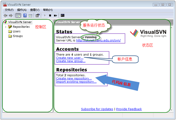 安裝好VisualSVN Server后【安裝過程看這里】,運(yùn)行VisualSVN Server Manger,下面是啟動(dòng)界面: