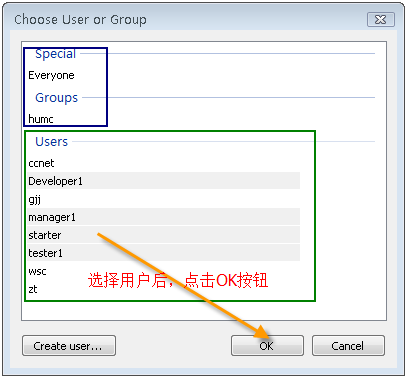 點(diǎn)擊上圖中的"Add..."按鈕,在下圖中選擇我們剛才添加的用戶,點(diǎn)擊OK按鈕: