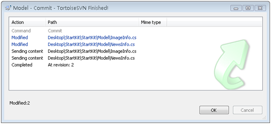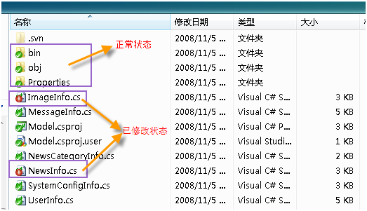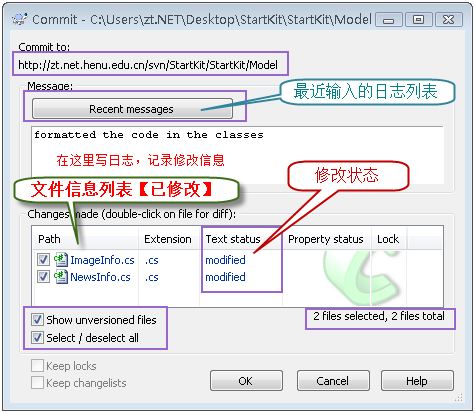 上面的圖2-2-7中,我修改了位于Model文件中的二個(gè)文件ImageInfo.cs和NewsInfo.cs,下面演示如何提交到SVN服務(wù)器。