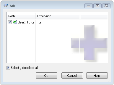 另外也可以在文件UserInfo.cs上點(diǎn)擊右鍵,點(diǎn)擊TortoiseSVN=>>Add,彈出如下圖的窗體:
