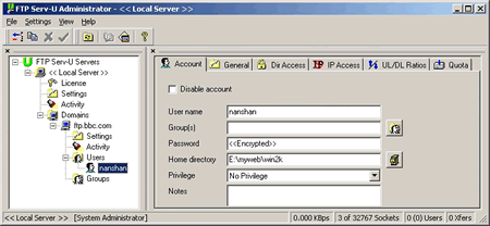 第三節(jié) Serv-U用戶屬性之“Account”(帳號)