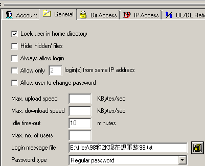 第四節(jié) Serv-U用戶屬性之“General”(常用)