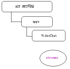我們可以通過FluorineFx來開發(fā)及時(shí)文字聊天、視頻聊天、視頻錄制、媒體播放程序以及WebGame等類似及時(shí)應(yīng)用程序。比如我們需要開發(fā)一個視頻聊天系統(tǒng),OK,那便在ASP.NET站點(diǎn)目錄下建立一個apps目錄,然后在apps下建立一個名為VideoChat的目錄,如下目錄結(jié)構(gòu):