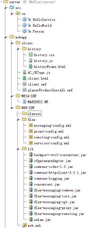下面我舉個較為全面的例子,先看整個項目的結(jié)構(gòu),服務(wù)器端使用BlazeDs,結(jié)構(gòu)為