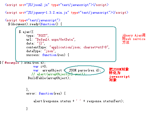 前面文章說(shuō)過(guò)下次會(huì)給大家介紹詳細(xì)的基于web Services的JqueryAjax調(diào)用如何把一個(gè)datatable得數(shù)據(jù)轉(zhuǎn)化成JSON數(shù)據(jù),然后在客戶端再通過(guò)json2.js轉(zhuǎn)化成javascript對(duì)象。