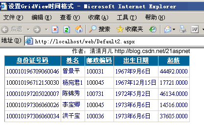 p; </asp:GridView>10.GridView實(shí)現(xiàn)自定義時(shí)間貨幣等字符串格式: