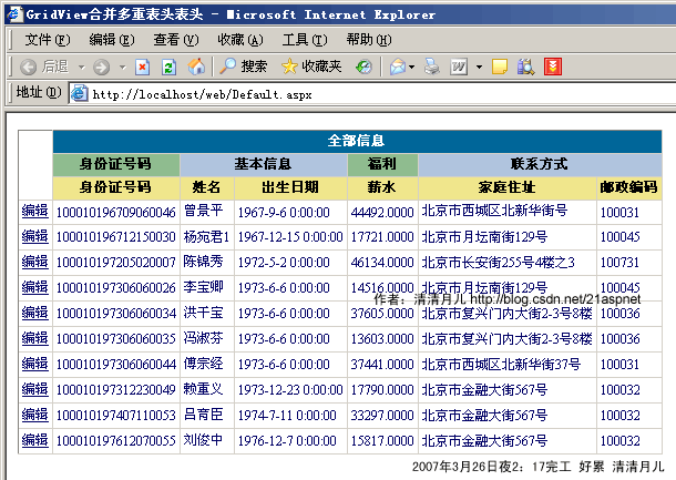 <title>GridView合并多重表頭表頭 清清月兒http://blog.csdn.net/21aspnet </title>