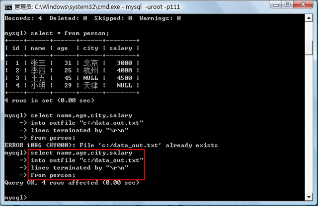 現(xiàn)在將這個表導(dǎo)出為文本文件:c:\data_out.txt。
