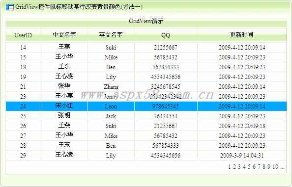 asp.net GridView控件鼠標(biāo)移動(dòng)某行改變背景顏色(方法一)