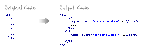 $(this).prepend('<span class="commentnumber"> #' i '</span>');