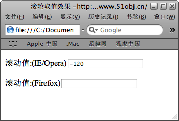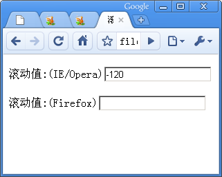 <p><label for="wheelDelta"> 滾動(dòng)值:</label>(IE/Opera)<input type="text" id="wheelDelta" /></p>