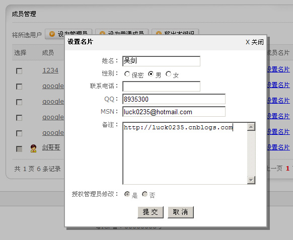 3、 通常在ContentWindow中會包含服務端的處理邏輯,這就需要通過POST與服務端交互,因為ContentWindow本身不包含"提交"按鈕,所以如果要POST就必需在ContentWindow.Ok()中自己寫submit()了。