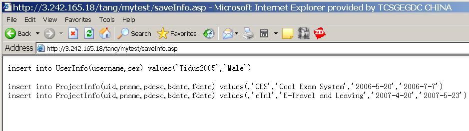 sql = "insert into ProjectInfo(uid,pname,pdesc,bdate,fdate) values("