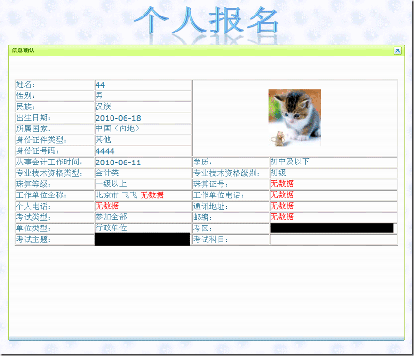 就是彈出一個確認(rèn)窗口,把已經(jīng)填報的信息都放到里面看看。
