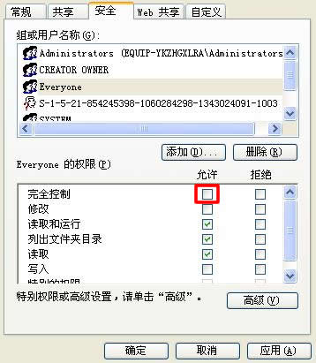 5、在下邊的用戶列表中選擇點(diǎn)擊“Everyone”,“確定”。