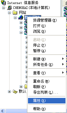 1、打開(kāi)"控制面板"->管理工具->Iternet信息服務(wù)器(IIS)->默認(rèn)網(wǎng)站->屬性: