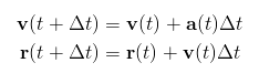 在計算機模擬中,通常需要計算連續(xù)的物體狀態(tài)。用游戲的用語,就是計算第一幀的狀態(tài)、第二幀的狀態(tài)等等。設物體在任意時間t的狀態(tài):位置矢量為、速度矢量為、加速度矢量為。我們希望從時間的狀態(tài),計算下一個模擬時間的狀態(tài)。最簡單的方法,是采用歐拉方法(Euler method)作數(shù)值積分(numerical integration):