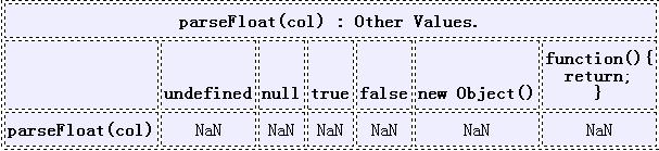 非字符串類型轉換成為快速轉換,作為一個字符串傳遞給 parseFloat 。當那些類型轉換作為字符串時不在是正常的結果,它的解析結果是 NaN,Objects 和 functions 。可能有自定義 toString 方法返回字符串將會被解析成為數(shù)值,這是一個特殊的要求。