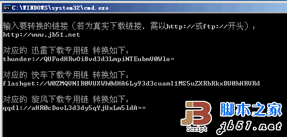 echo.&echo 輸入要轉(zhuǎn)換的鏈接(若為真實(shí)下載鏈接,需以http://或ftp://開頭):