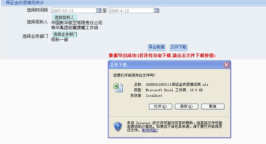 (說明:最后彈出下載文件的一個(gè)頁(yè)面一直想讓其自動(dòng)關(guān)掉,但是不行,如果不關(guān)掉,再點(diǎn)導(dǎo)出,不會(huì)彈出下載框,實(shí)際的處理中我們可以在導(dǎo)出旁邊放個(gè)下載按鈕,就像上面的效果圖里那樣,當(dāng)然可以點(diǎn)導(dǎo)出的時(shí)候讓其在網(wǎng)頁(yè)中直接打開,點(diǎn)下載的時(shí)候再?gòu)棾鱿螺d框,但是直接打開的話,文件需要生成在虛擬目錄下,不太安全,呵呵~~,看實(shí)際情況處理了)